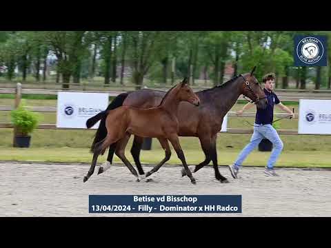 Betise vd Bisschop is a filly sired by Dominator. Dominator himself reached the highest level with Christian Ahlmann. Her dam, Jackpot van't Hagenhof, jumped at 1.40m level and already gave several talented youngsters. This should not be surprising, because if we look further into the maternal line, we find Grand Cru van't Hagenhof as grandmother, the full sister of Giorgio van't Hagenhof (1.60m level). Grand Cru already gave several Grand Prix horses. Further in the line we also find the famous Babbe and Usha van't Roosakker. Great perspective for both sport and breeding.
